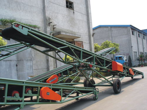 DY型移動式帶式輸送機分為可升降及不可升降型兩大類,升降型分為機動和非機動兩種,整機行走為非機動,輸送帶的運行靠電動滾筒驅(qū)動。
